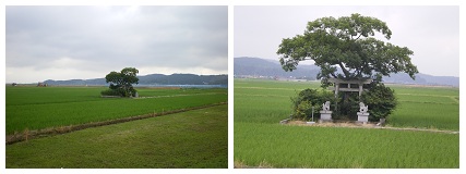 宇奈具志神社の旧跡地とされている。 養老年間(西暦717)、この地に奉斎して出田神社(ユヅリタ)と称して当村の産土神であり、今も神廟といって水田中に石祠の古跡保存されている。 |