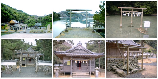 「海幸彦・幸山彦伝説」で山幸彦(彦火火出見尊)が辿り着いた海宮の古跡という。山幸彦は、ここに三年留まり、豐玉姫命を妃とした。 境内に豊玉姫の墳墓と、磯良(いそら)の墓と傳える岩場があるが、これは古墳ではない。おそらくこれは、社殿が営まれる以前の古い祭祀の場所で、磐座と思われる。 「式内社調査報告」で永留久恵は「この地が阿曇(あつみ)氏の有力な本拠であつた」とし、「『魏志・東夷傳』倭人條にいふ対馬の大官卑狗といふのは仁位の付近に居たものと推定し、この海人族の首長である卑狗(彦〉が祭つた神が、海神豊玉彦ではないかと述べたことがある。この海神の名が、俗傳のなかでは磯武良(イソタケラ〉となつてゐる。」と述べている。 明治5年の社号復旧の際、式内社大島神社と認定されたが同11年再度改称して、旧名の和多都美に復している。 三の鳥居と四の鳥居の間にある三本柱の鳥居の下には、「磯良恵比須」という、鱗状の亀裂が見られる岩が祀られている。磯良恵比須は、阿曇磯良(海神)のご神体と伝わる。 |